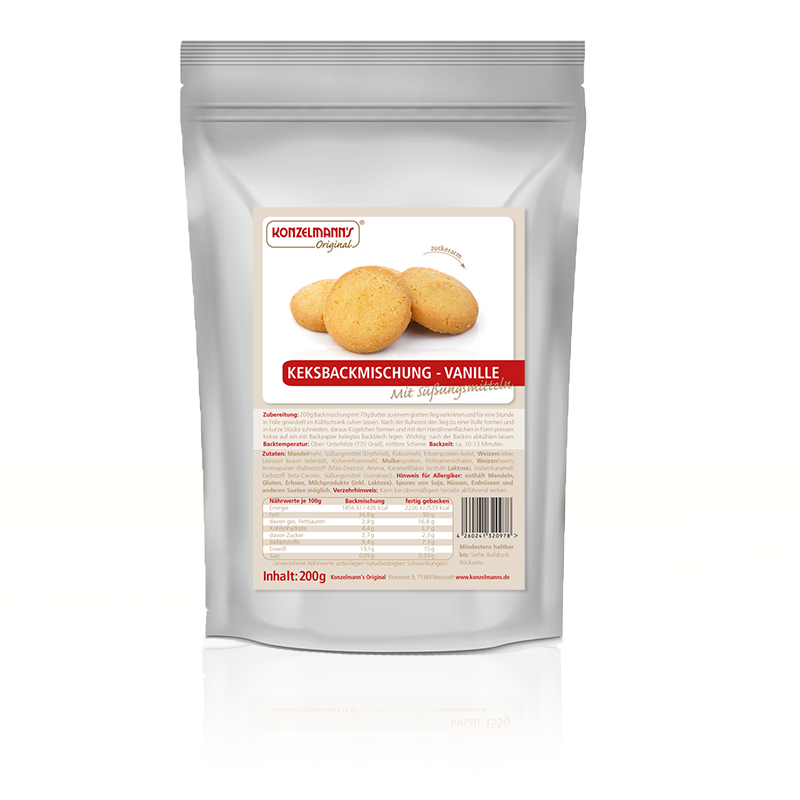 Egal ob als kleiner Snack für zwischendurch zum Kaffee oder zu Weihnachten: diese Backmischung für Lower-Carb Vanille Kekse lässt Ihre Keks-Wünsche wahr werden. Mit einem besonders aromatischen Vanille-Geschmack und einer spielend-einfachen Zubereitung ist diese Backmischung ideal für alle, die den schnellen Genuss von frischen Keksen lieben und möglichst wenig dafür tun wollen.
