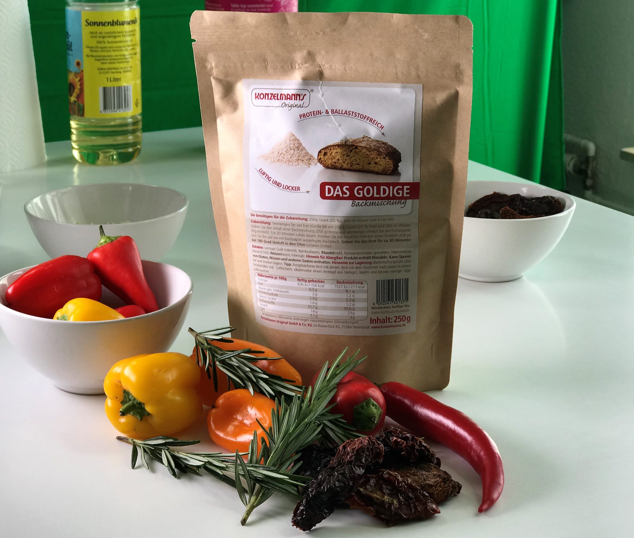 Damit nicht genug: Die Zubereitung ist super einfach. Nur Eier, Quark und Wasser dazugeben, kneten, kurz ruhen lassen und ab in den Ofen. So hat man nach 85 Minuten ein köstliches Brot, wie frisch vom Bäcker. Egal ob als klassisches Brot, geformt zu leckeren Brötchen oder als Baguette: Das Goldige ist ein wahrer Gaumenschmaus für echte Genießer. Mit ein paar Gewürzen und ein bisschen Kreativität lassen sich aus dieser Brotbackmischung ganz schnell mediterrane Versionen zaubern.