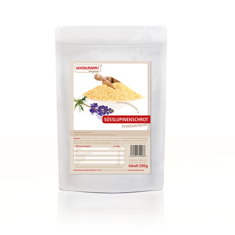 Süßlupinenschrot besteht aus verarbeiteten Lupinen – einer Pflanze, die hierzulande in Vergessenheit geraten ist. Doch gerade in der kohlenhydratreduzierten Ernährung stellt sie eine tolle Alternative dar. Der leicht-nussige Geschmack der Lupinen verleiht vielen Gerichten eine besondere Note. So kommt das Süßlupinenschrot unter anderem in Müslis, Backwaren als auch in herzhaften Gerichten zum Einsatz. Mit diesem Schrot sind der Fantasie keine Grenzen gesetzt.